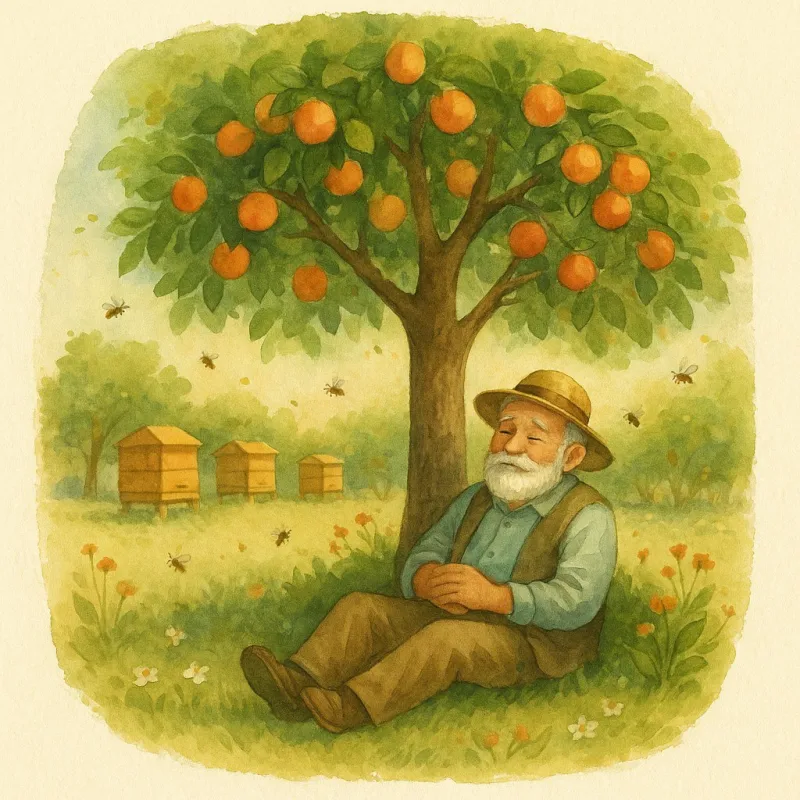 Եվ երբ մի օր Մովսես պապը այլևս չեկավ այգի, ծիրանենին այլ կերպ էր օրորվում։ Քամին մեղմ էր, մեղուները՝ ավելի լուռ։ Բայց ծառը շարունակում էր կանգնել հպարտ ու խաղաղ, ինչպես այն ժամանակ, երբ Մովսես պապն էր իրեն խնամում։