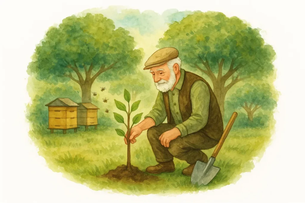 Մի քանի տարի առաջ նա որոշեց այգու ամենաարևոտ անկյունում նոր ծիրանենի տնկել։ Նա հողին խոստացել էր, որ դեռ շատ ծառեր պիտի տնկի,թեկուզ ծերության այդ հանգիստ օրերին։