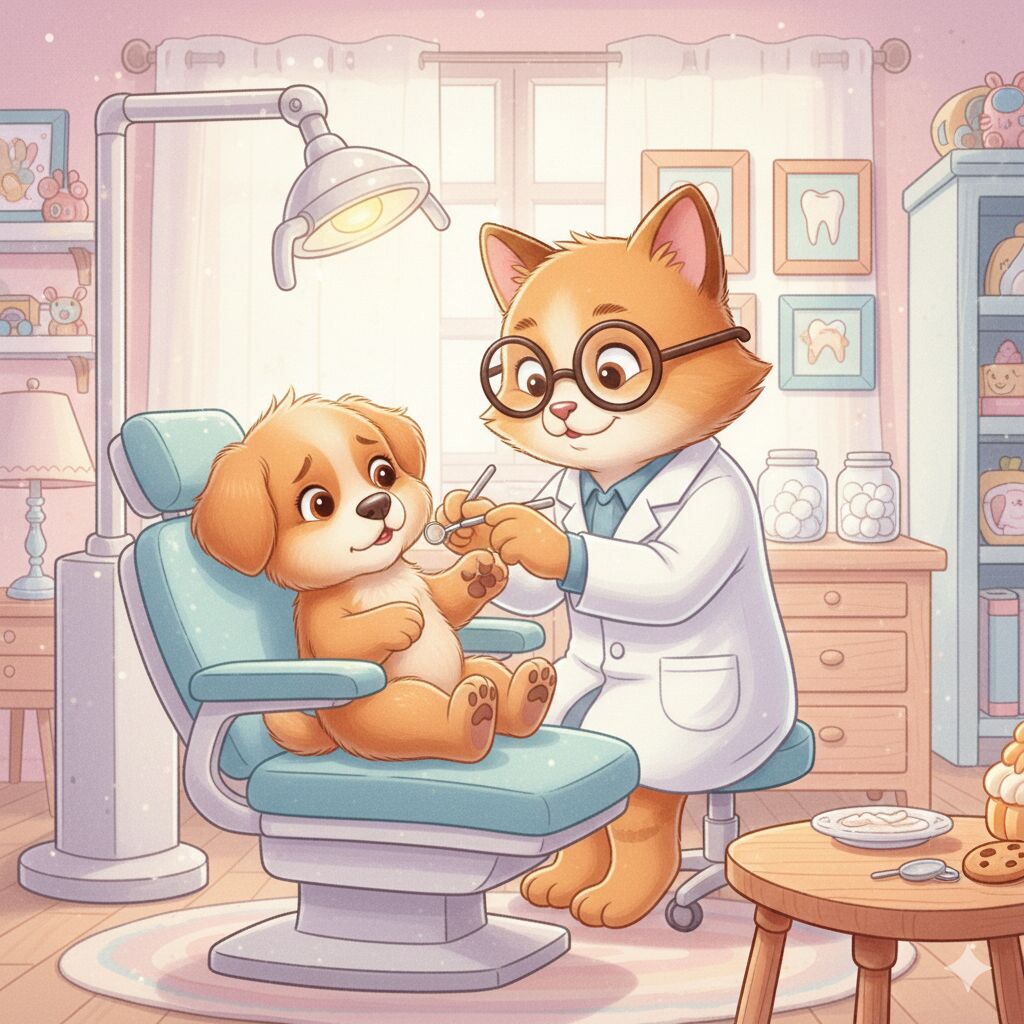Մայրիկը գրկեց Բոբիին ու տարավ Իմաստուն Կատվի մոտ, ով անտառի ամենահայտնի ատամնաբույժն էր։ Բժիշկ Կատուն հագել էր ձյունասպիտակ խալաթ և կրում էր մեծ ակնոցներ։